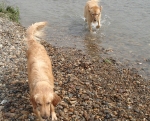 アリスもノーリードに挑戦。川にはちょっと躊躇っただけで