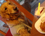 大人しく床に横になって他の席のワンちゃんを眺めてました。