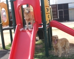 キラはひとりでも滑り台で遊べるのに、アリスだけ置いてけぼり…。
